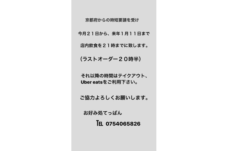 要求缩短在京都市处理酒精饮料的餐厅的时间